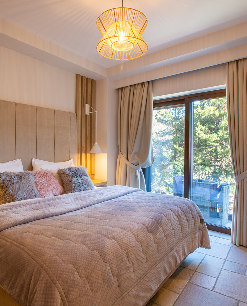 Η Σουίτα Ερατώ στο Μέτσοβο είναι εμπνευσμένη από τη θεά της αγάπης και της τέχνης, αποπνέοντας ρομαντισμό και κομψότητα. Διαθέτει ευρύχωρο king-size κρεβάτι, πολυτελές μπάνιο με μοναδικές παροχές, τηλεόραση 4K υψηλής ευκρίνειας, ενδοδαπέδια θέρμανση, Wi-Fi υψηλής ταχύτητας, καθώς και επιλεγμένα λευκά είδη και προϊόντα περιποίησης υψηλής ποιότητας. Η διακόσμηση με φυσικά υλικά, όπως ξύλο και πέτρα, δημιουργεί μια ζεστή και φιλόξενη ατμόσφαιρα που ενισχύει την αίσθηση της απόλυτης χαλάρωσης.